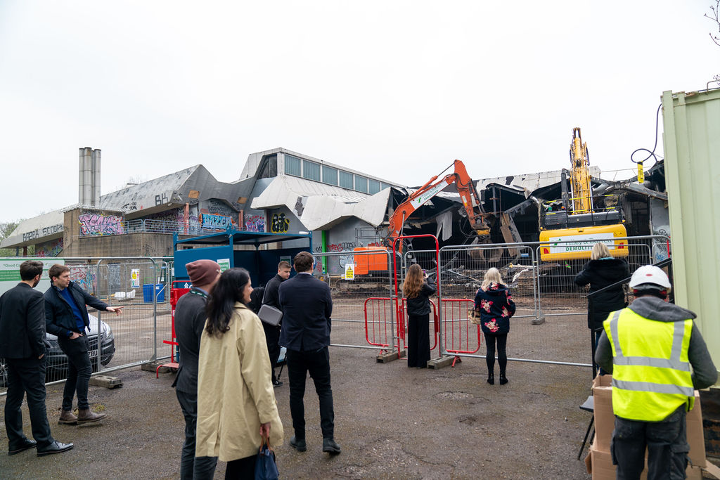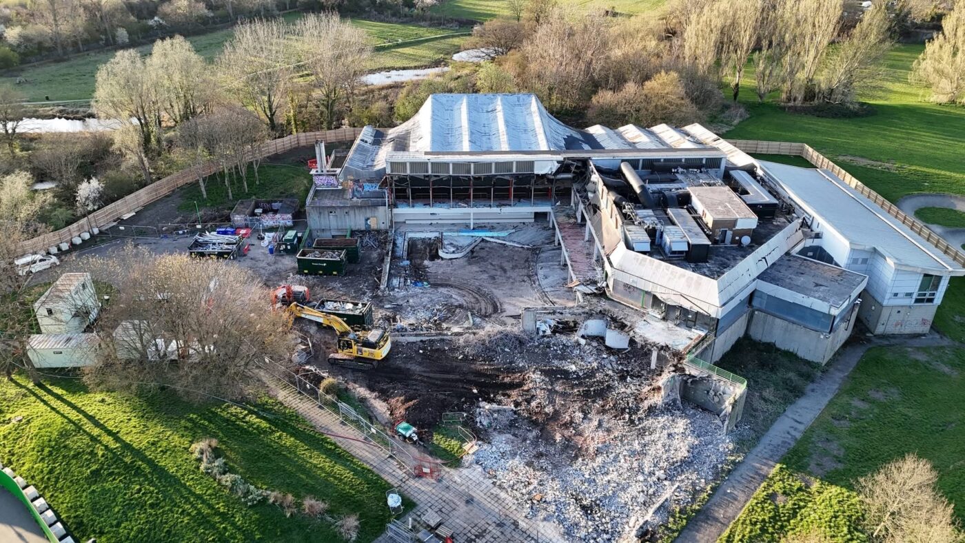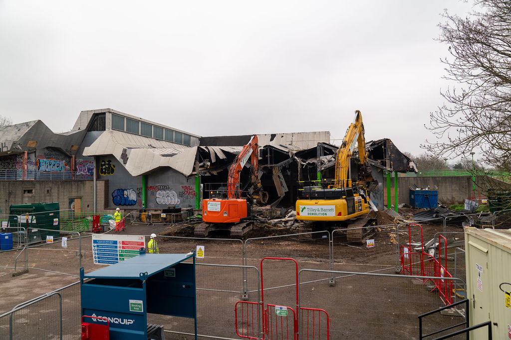 The demolition itself reflects a strong commitment to circular economy principles, with materials carefully reused and recycled wherever possible. In addition, legacy sports and swimming equipment has been collected and donated to local community groups, charities and schools, ensuring continued social value beyond the life of the original facility.